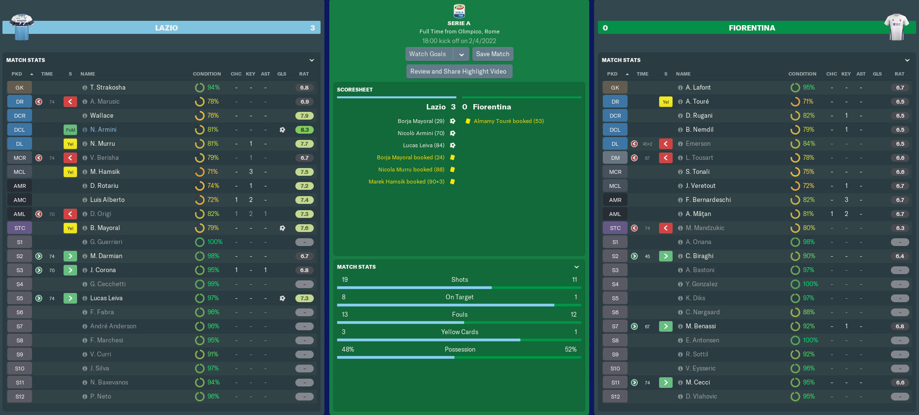 LAZIO vs FIORENTINA (Serie A, Match 31)