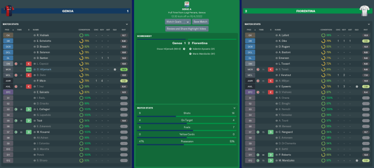 GENOA vs FIORENTINA (Serie A, Match 33)