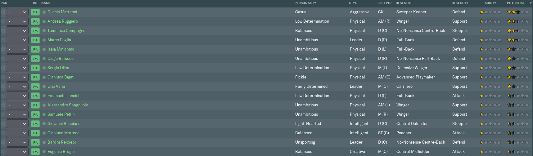 I suppose Duccio Matteoni has a chance, albeit a very slim one. He’s casual and aggressive (a contradiction in terms?), and we’ve already got at least two young goalkeepers of higher potential.