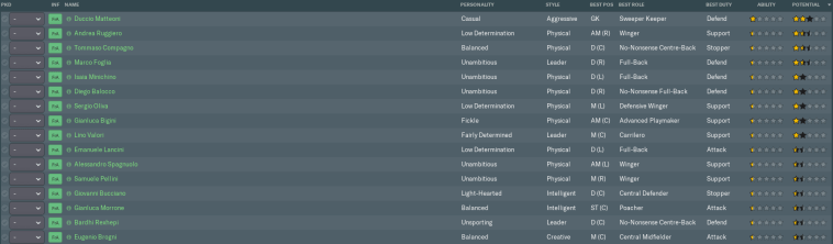 Speaking of promising keepers, Filippo Turci was having a fine season on loan with Serie C side Monopoli, with his 16 clean sheets being the most in any of the three divisions at that level. Another exciting talent from our 2018/2019 intake was inside-forward Stefano Rega, who’d so far scored five goals in Serie B for his loan club Ternana.