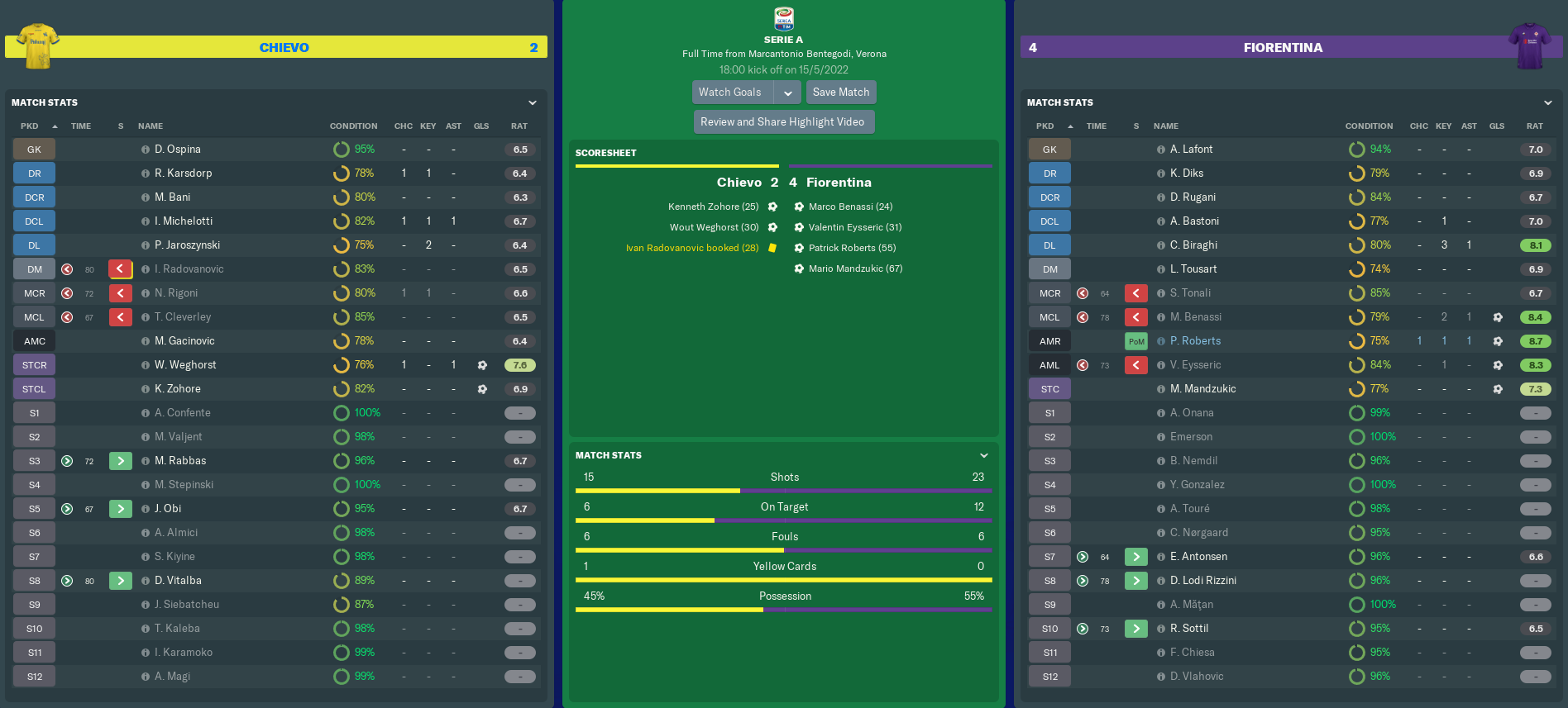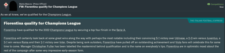 I would like to thank everybody who has taken the time to read this maiden story on Fuller FM. I hope you have enjoyed reading it as much as I have enjoyed writing it. There will be one final Season Review post later in the week, in which I will summarise the 2021/2022 campaign and my Fiorentina reign as a whole.
