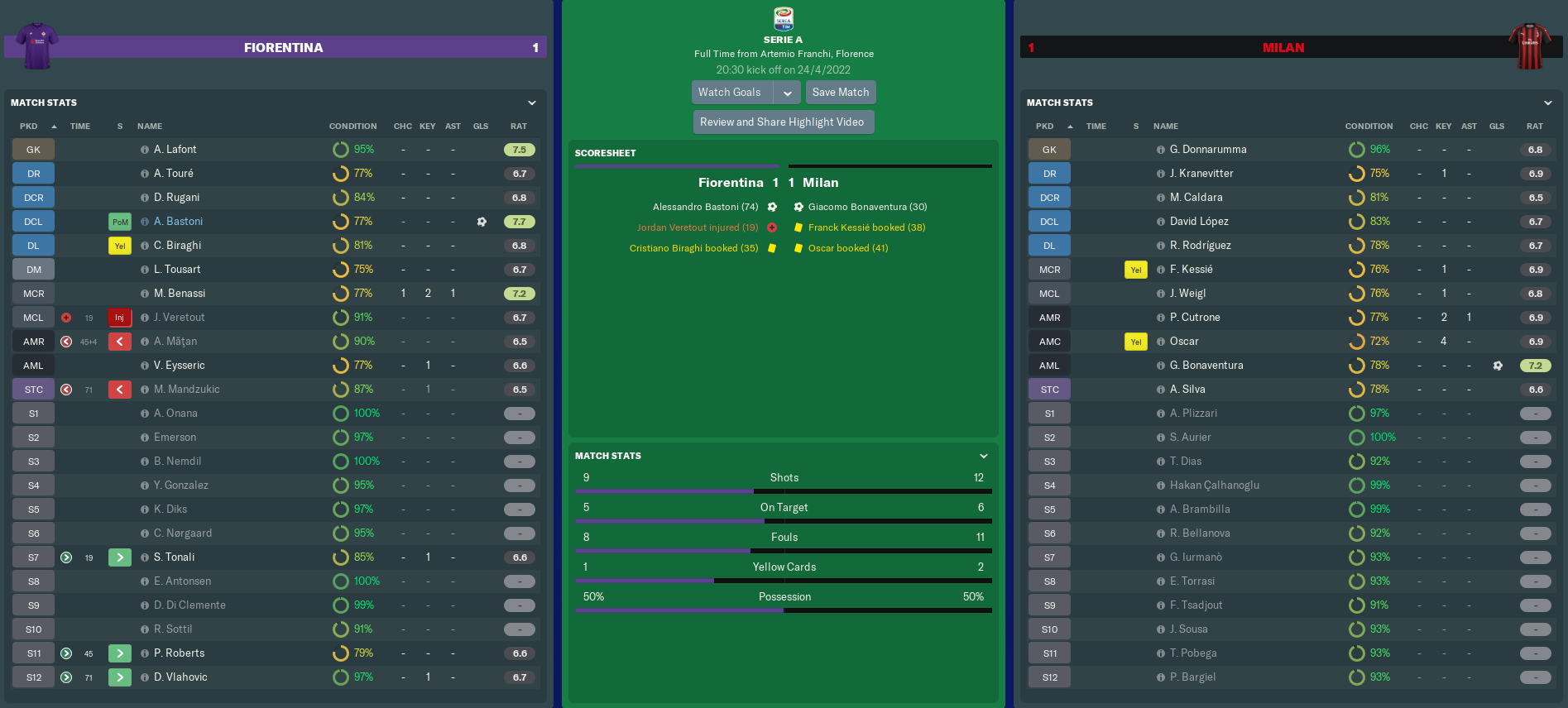 FIORENTINA vs AC MILAN (Serie A, Match 34)