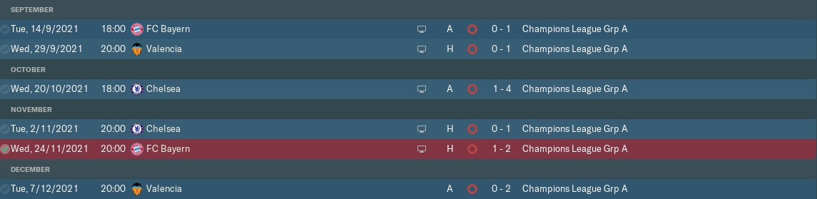 We were drawn into a very difficult group on our Champions League return. We almost started off with an impressive draw at Bayern München, until a shaky Lafont handed Andrea Belotti a very soft winner late on. Another 1-0 defeat to Valencia followed, and then our CL results list quickly became a sea of red.