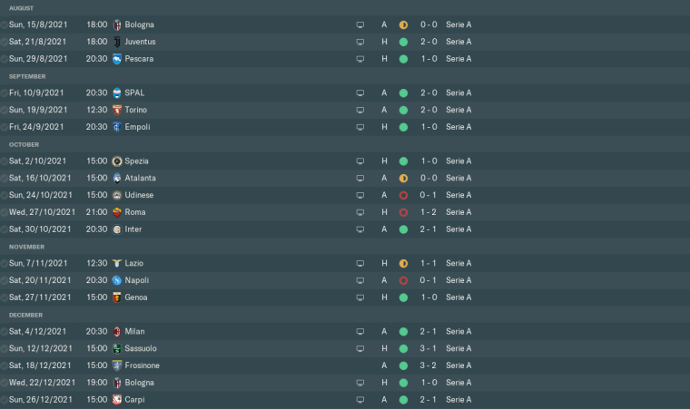 We didn’t enjoy the most promising of starts, drawing 0-0 in our opening match at Bologna. A 2-0 home win over bitter rivals Juventus showed rather more of our potential, with two-goal hero Federico Chiesa putting in a truly exceptional performance. Here was hoping he could keep that up throughout the season…