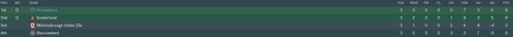 Sunderland used almost every trick in the book in their bid to draw level in the second half, but we stayed resolute. A second straight group win secured our spot in Round 2 of the Pointless Trophy, with one pool match still to play against Macclesfield, who were already eliminated. Woohoo.