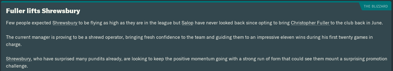 That disappointing result had been an exception to the rule of my early Shrews reign. Having won more than half of my first 20 games in charge, I’d quickly restored some positivity to Salop after last season’s dose of double disappointment at Wembley.