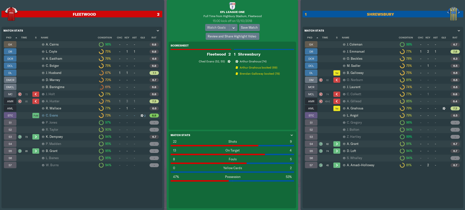 FLEETWOOD TOWN vs SHREWSBURY TOWN (League One, Match 13)