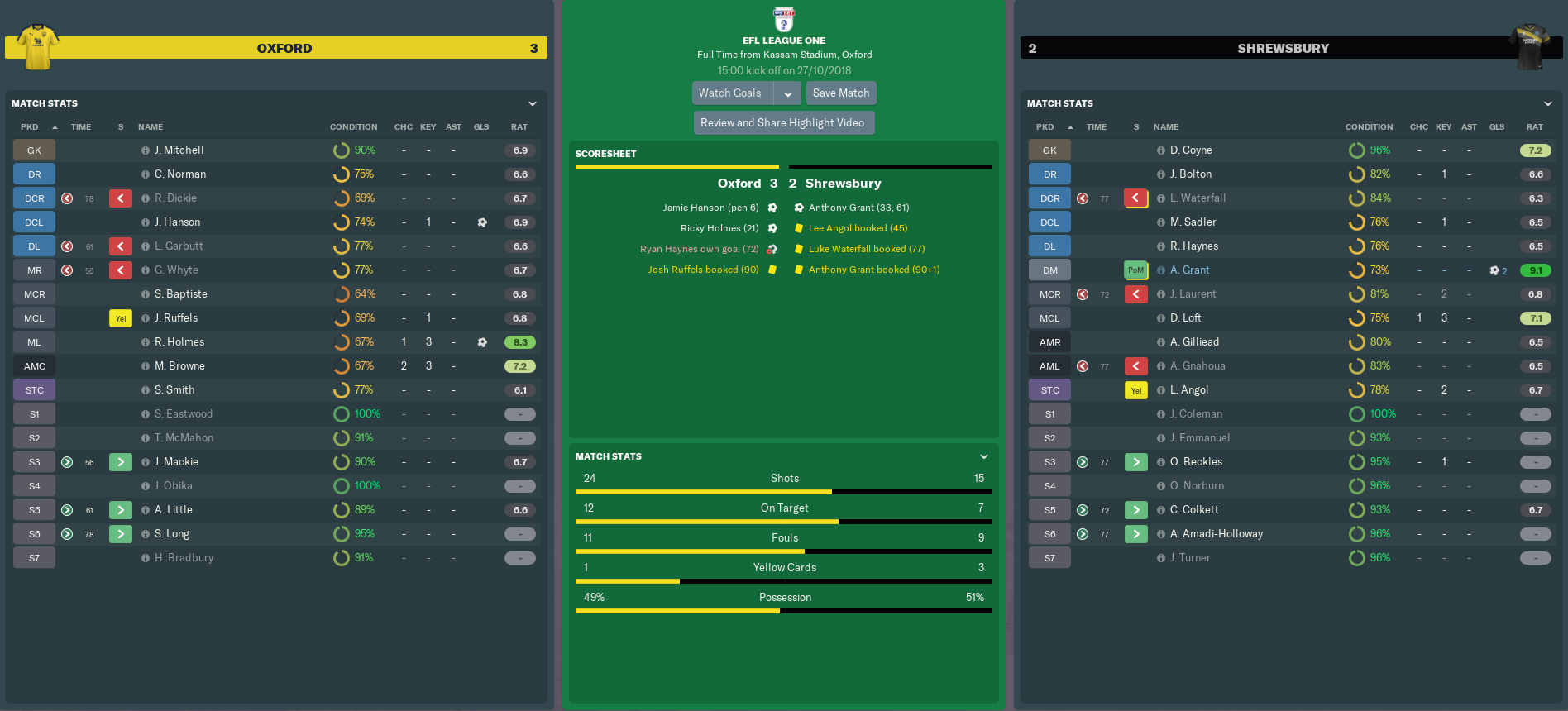 OXFORD UNITED vs SHREWSBURY TOWN (League One, Match 16)