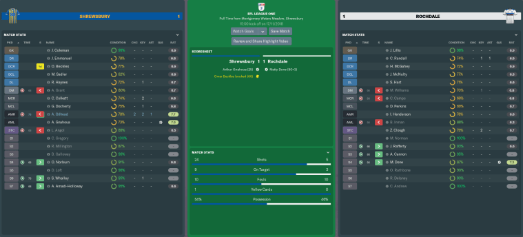 SHREWSBURY TOWN vs ROCHDALE (League One, Match 18)