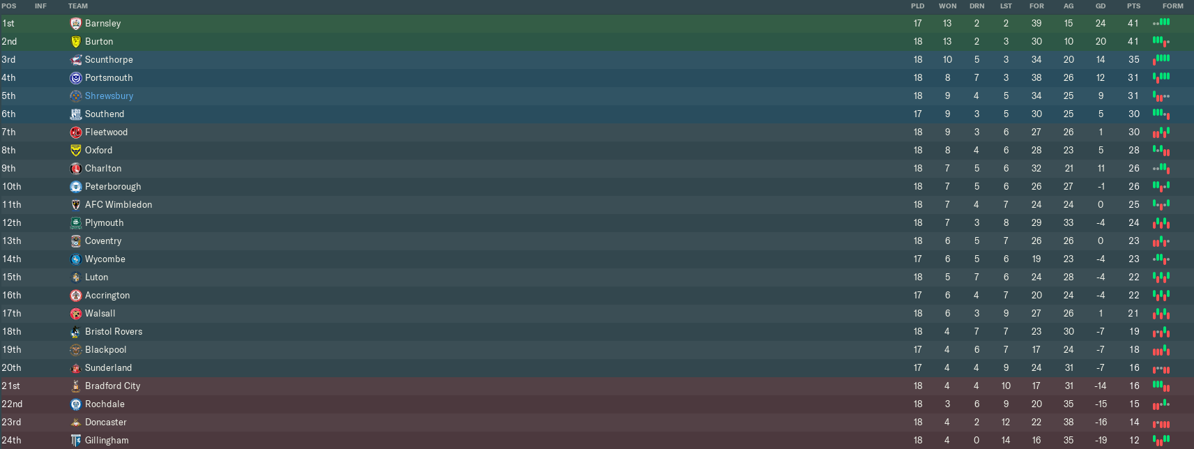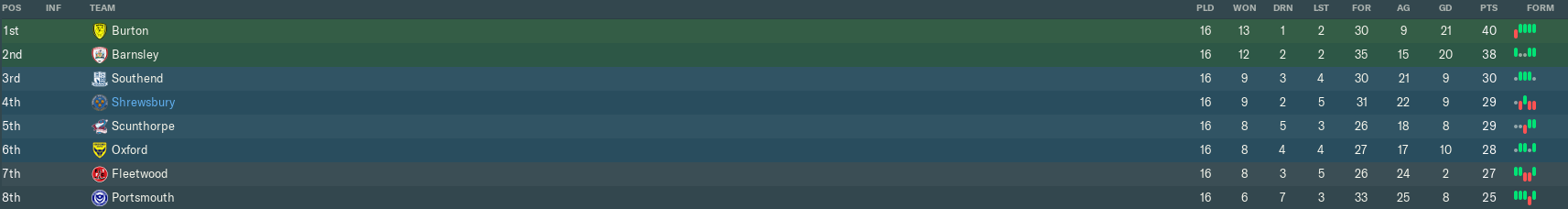 Three defeats in four games had seen us slip to 4th, falling behind Southend. Those runaway trains bearing the names Burton and Barnsley were now 11 and 9 points clear of us respectively. Meanwhile, those teams ranked 5th to 8th – including Oxford – were making up ground and looking primed to overtake us if we tripped up again.