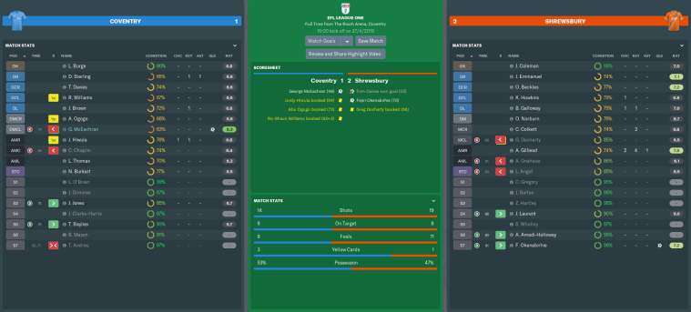 COVENTRY CITY vs SHREWSBURY TOWN (League One, Match 45)