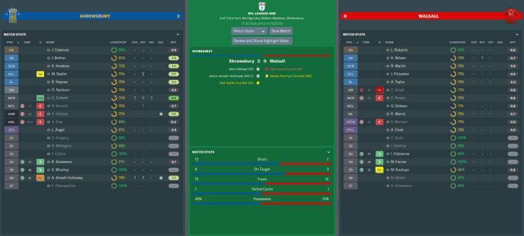 SHREWSBURY TOWN vs WALSALL (League One, Match 46)