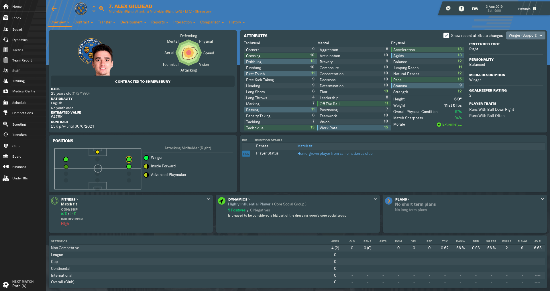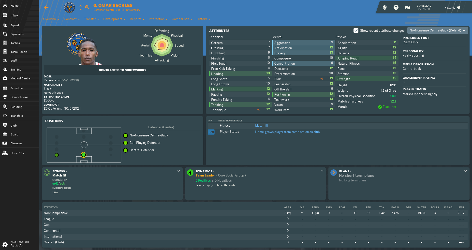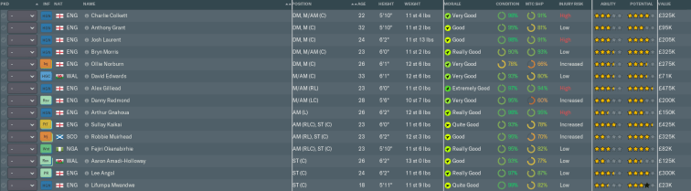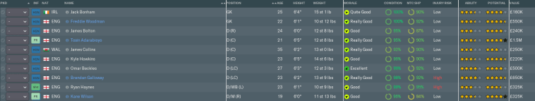 So here’s how the first-team looks heading into the season. As ever, I’ll quickly summarise each player and provide attribute screenshots for a few of them. If you want to have a closer look at our summer signings, you can quickly go back to Part 1.