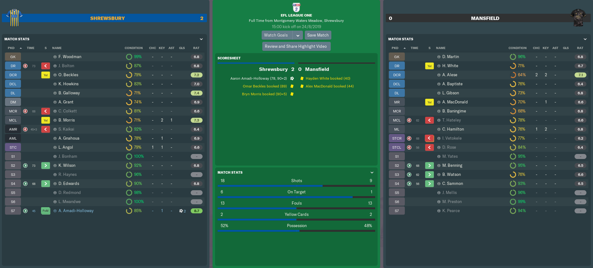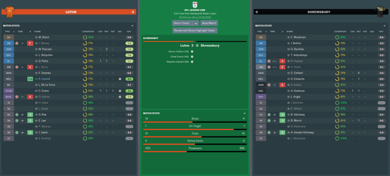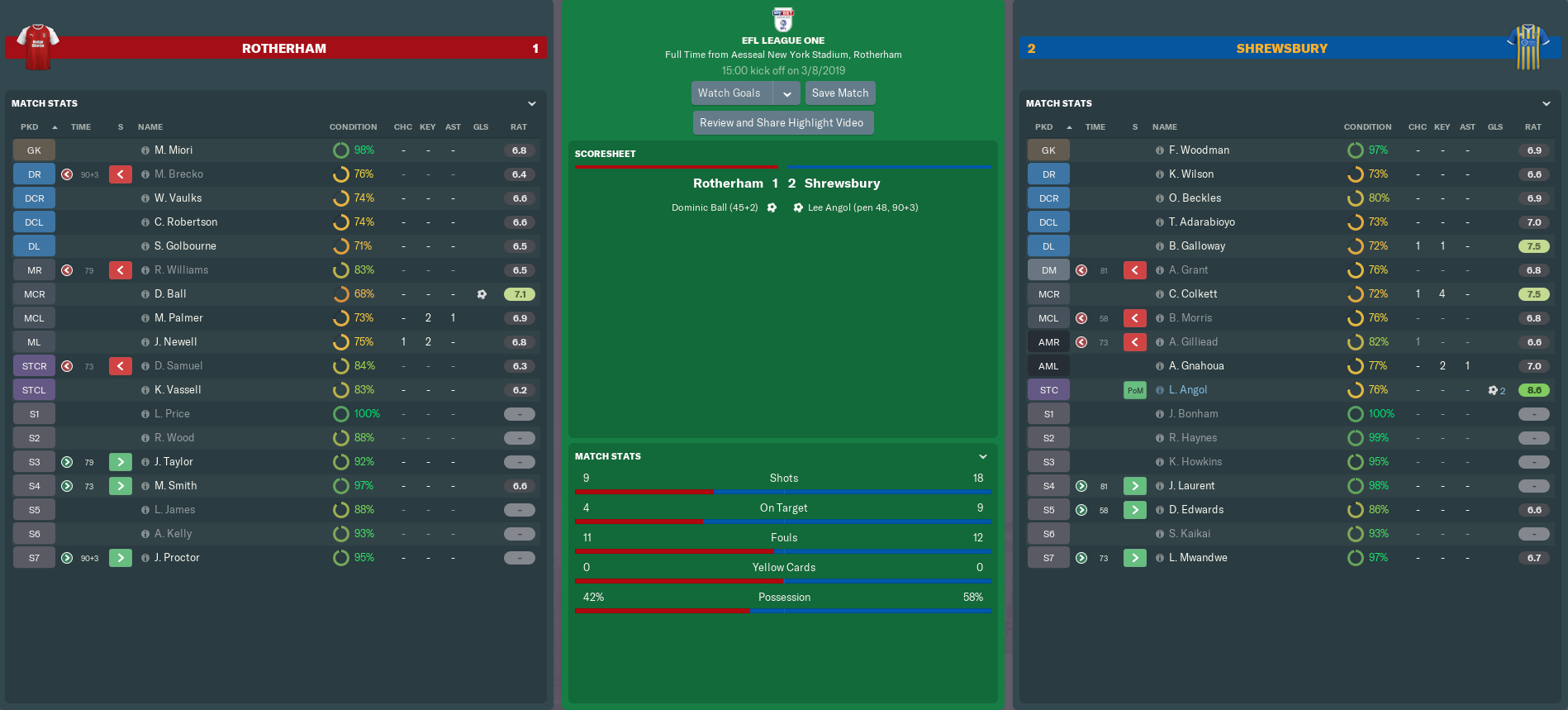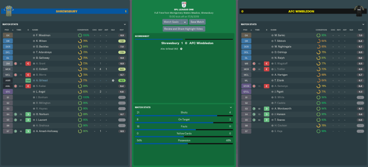 All in all, that’s another positive start for the Shrews. Lee’s still got plenty of Angoals left in him, though we need to find a way to score before half-time. I suspect some tactical fine-tuning might be in order for our next few fixtures. Come back next week to see how we get on!