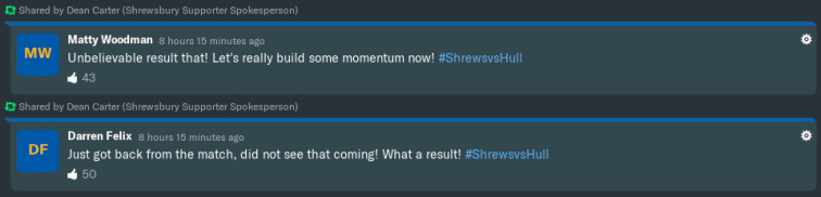 Suffice to say, we were now nicely-placed at the top of the League One table on goal difference. The excitement amongst Shrews fans on social media was palpable: