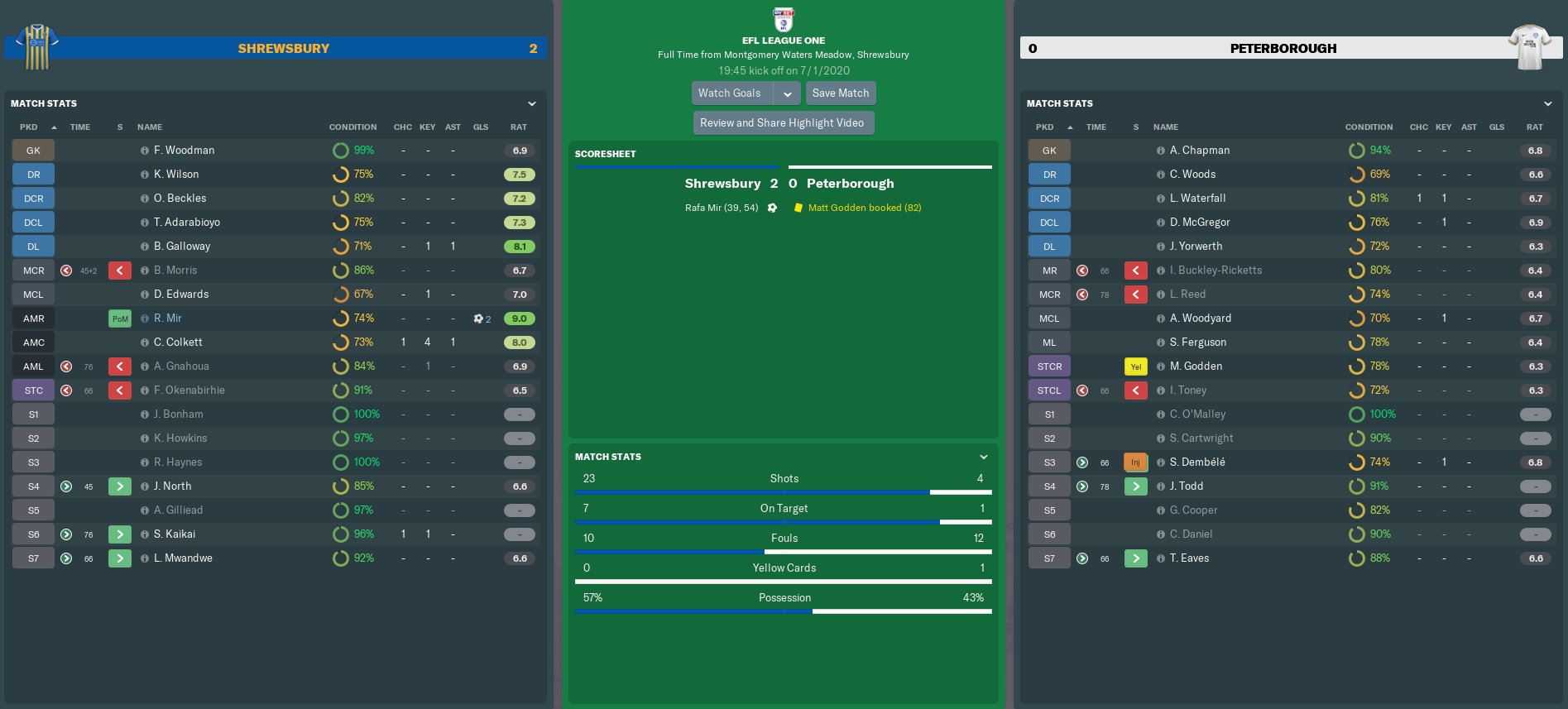 Woodman only needed to make one save, denying Peterborough forward Siriki Dembélé from distance in the 79th minute. With that, our first clean-sheet victory in almost three months was completed. The 4-2-3-1 had already worked wonders, and New Meadow was a pleasant place to play football again.