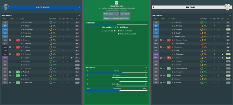 SHREWSBURY TOWN vs MILTON KEYNES DONS (League One, Match 28)