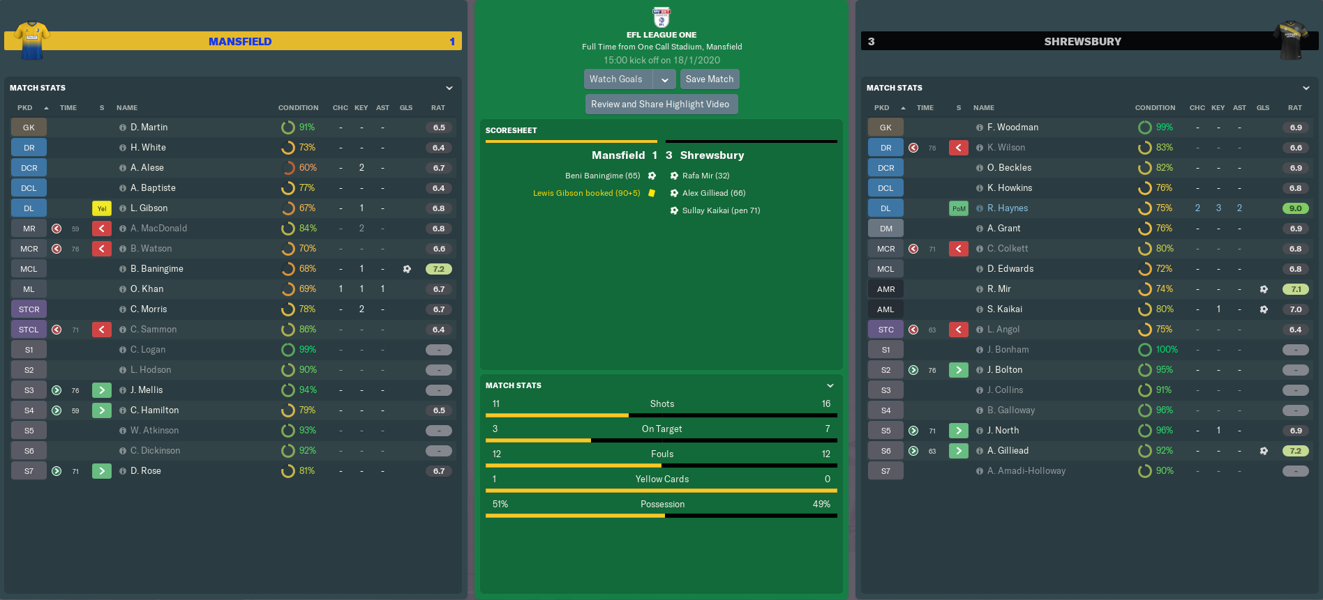 MANSFIELD TOWN vs SHREWSBURY TOWN (League One, Match 29)