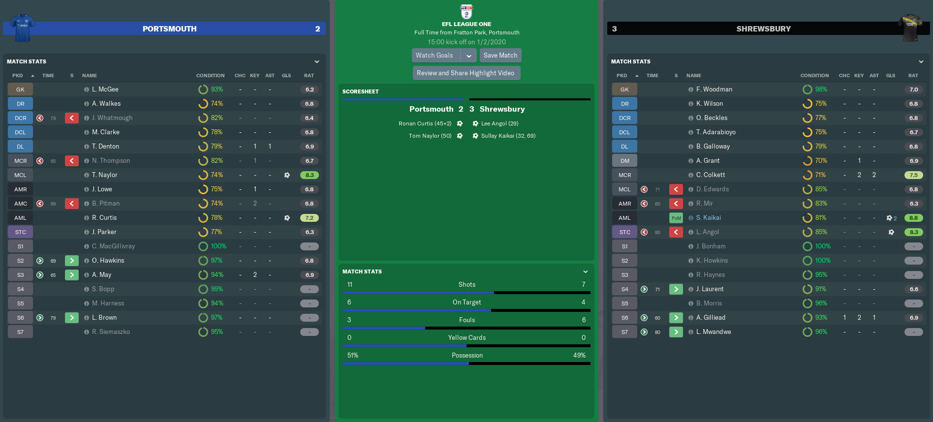 PORTSMOUTH vs SHREWSBURY TOWN (League One, Match 31)