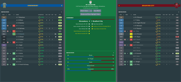 SHREWSBURY TOWN vs BRADFORD CITY (League One, Match 32)