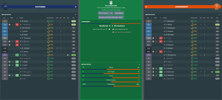 SOUTHEND UNITED vs SHREWSBURY TOWN (League One, Match 35)