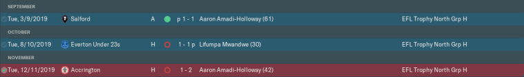 What should’ve been a straightforward Pointless Trophy group campaign ended in disaster. After having mixed fortunes in penalty shoot-outs against Salford and Everton Under-23s, our fate was decided at home to Accrington. A 1-0 lead would have sent us into the next round, but we sat back too early, and Stanley punished us with two late goals to leave us rock-bottom on three points.