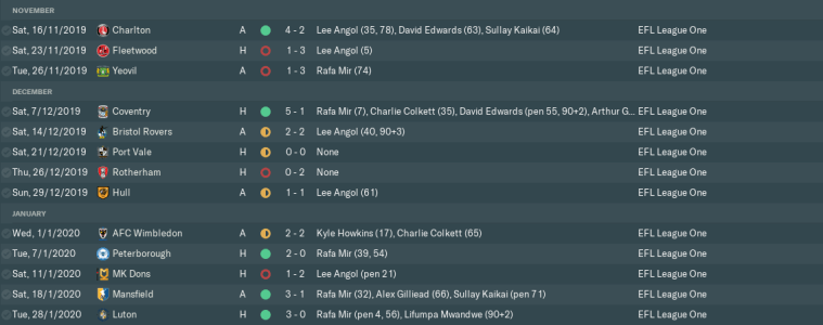 Our opening 11 fixtures would yield eight victories and put us at the top of the table. However, there were a couple of worrying horror shows away from home against Luton and Walsall. While we somewhat eased our defensive problems in October, results started to become rather more inconsistent.