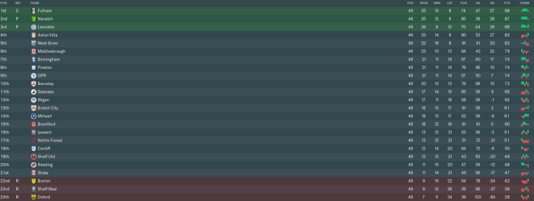 Late-season surges saw Fulham and Norwich claim automatic promotion from the Championship at the expense of Leicester. The Foxes would take the scenic route back to the Premier League, beating West Brom 2-1 in the Play-Off Final. Considering that Leicester were 18th when they sacked Sam Allardyce 10 games into the season, that was quite a recovery.