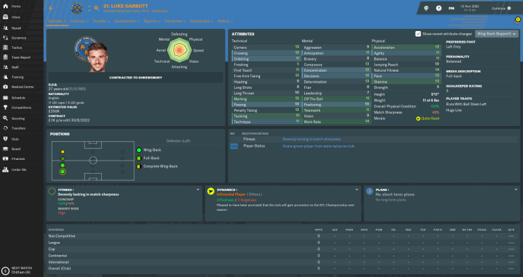 I think I might be finished with Josh Laurent as well, even though he’s still a decent box-to-box midfielder for this level. It’s just that Josh has become so peripheral at Salop that there’s no point keeping him around when I could bring Evans or Danny Hughes up from the Under-18s instead. As much as I like the lad, I can’t let him block our prospects’ path to first-team football.