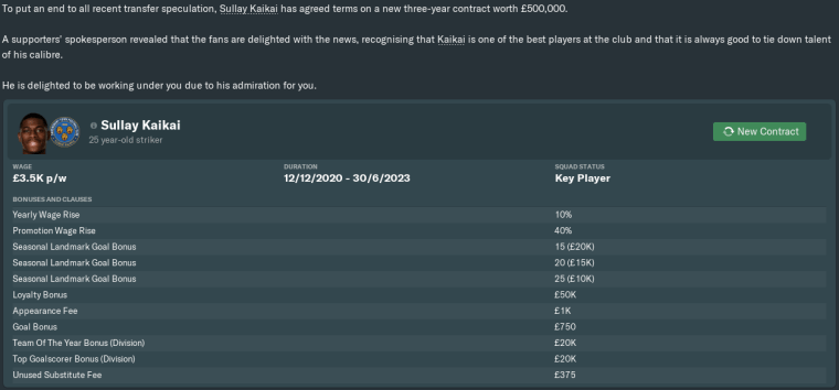 Having scored 17 goals since November 2019, Kaikai had attracted plenty of interest from Championship clubs. Getting the explosive inside-forward on a new long-term contract before the January window was a must, so I was delighted when we agreed fresh terms. Sullay was our new highest-paid player on £3,500 per week, but with our financial situation looking a little rosier, we could afford the extra outlay.