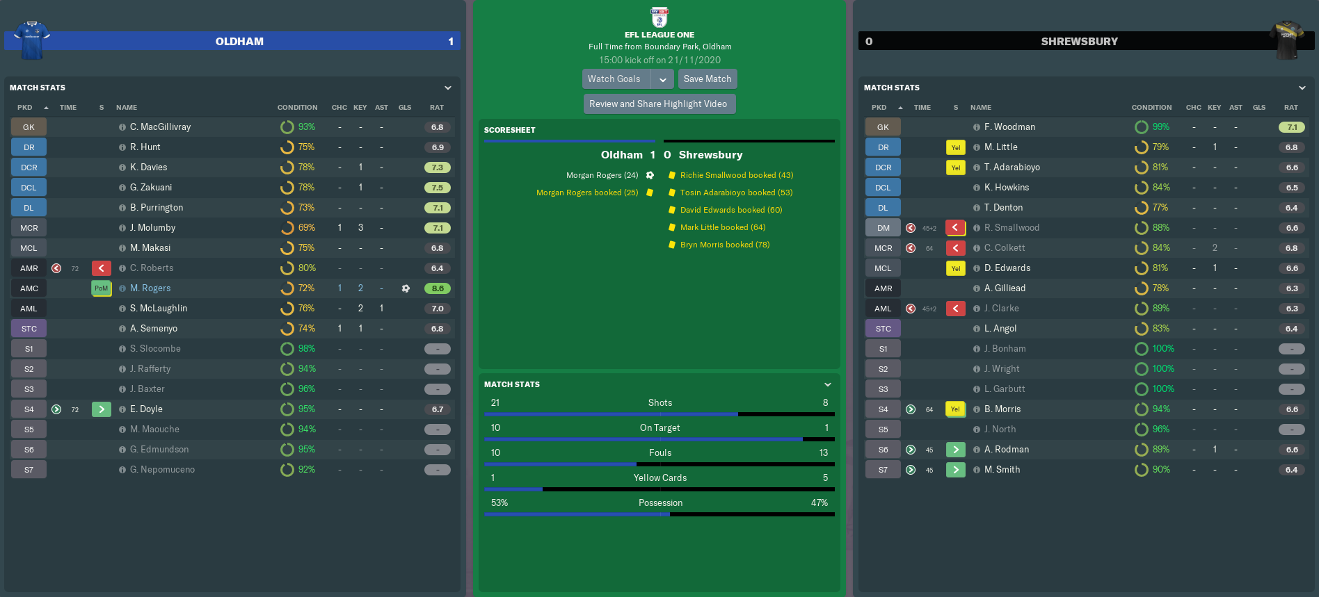 OLDHAM ATHLETIC vs SHREWSBURY TOWN (League One, Match 19)