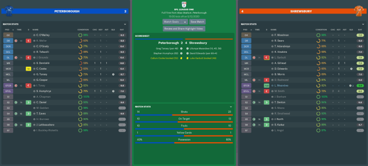 PETERBOROUGH UNITED vs SHREWSBURY UNITED (League One, Match 22)