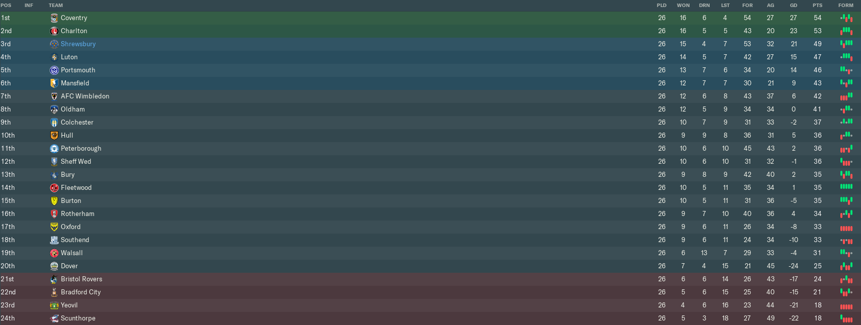 A run of three straight wins lifted us into 3rd as we ended 2020 on a high. Significantly, both Coventry and Charlton had started to wobble, boosting our hopes of climbing into the top two.