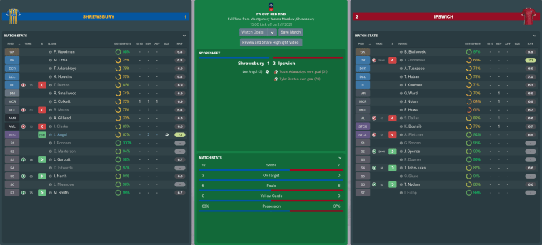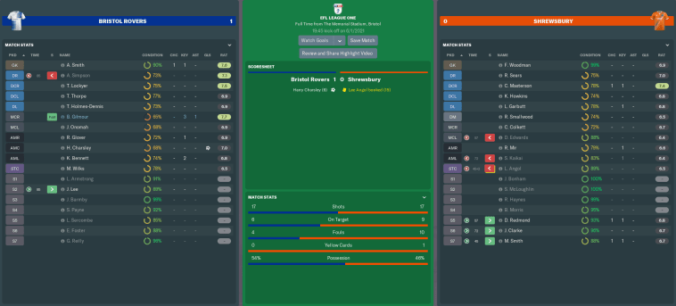 Firstly, I must continue replaying that match until Oxford win, thus leaving us at effectively the same point we were at before the rage-quit. Also, if we fail to get promoted this season, I will only stick around for one more shot at promotion. If Shrewsbury are still in League One at the conclusion of the 2021/2022 season, I will end the story regardless.
