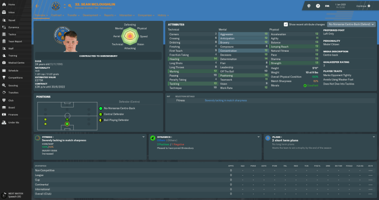 And now we come on to Sean McLoughlin, who has finally completed his free transfer from Cork City after signing a pre-contract agreement in the summer. Though my assistant manager rates McLoughlin as only our fourth-best centre-back, I’m sure you’ll agree with me that the 24-year-old Irishman is still pretty bloomin’ solid.