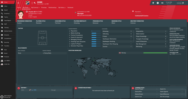 Hello there, ladies and gentlemen! My name’s Chris, and I’m delighted to welcome you to the start of a brand new Football Manager 2019 adventure on Fuller FM. We’ll be following Lyn 1896 as they try to rise up the Norwegian leagues under new management.