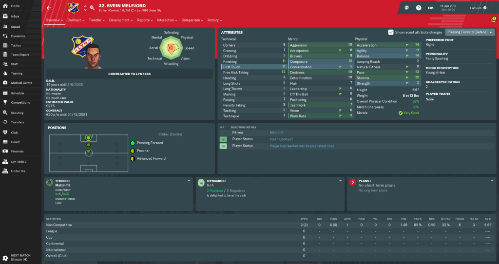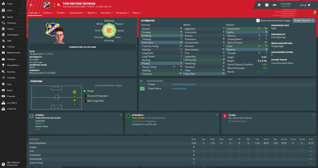 The explosive Haugstad – who’s made 68 appearances in the top two divisions – starts out as our first-choice right-winger. Mind you, he does not have much technical ability, so he could be quickly ousted if other players (such as Johannes Johannessen, Gjemmestad or even Fritzøe Östman) kick on.