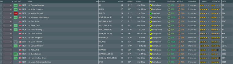 And here are the dozen players who’ve joined Lyn for the new season. The first two – left-footed full-backs Martin Fasting and Joakim Rishovd – were actually signed shortly before I took charge, but the others were all my own acquisitions.