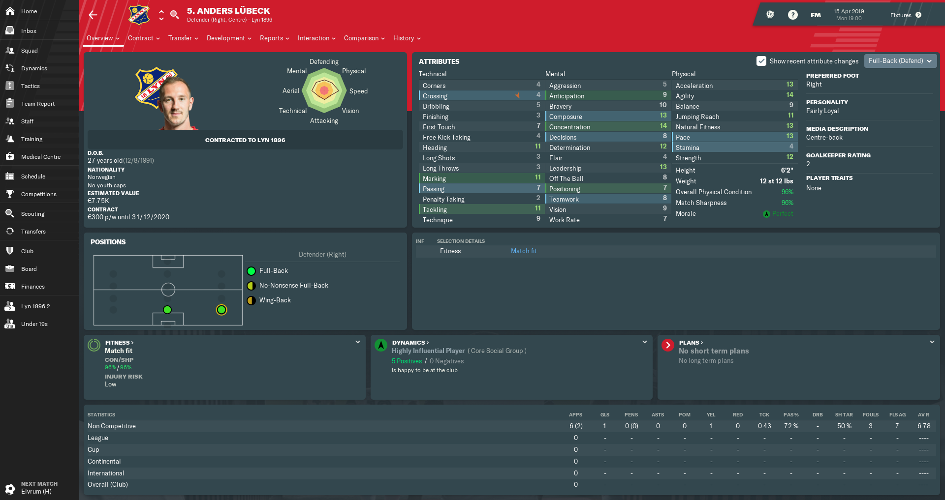 Defence is still quite a weak area for us, though we do have some quality there. While Anders Lübeck has questionable positioning and prefers to play at right-back, he has the concentration and aerial ability to be a reliable central defensive general. As such, I have appointed him as our new captain.