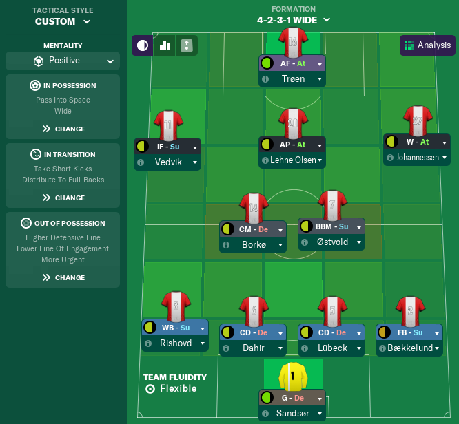 I later signed a couple of very different midfielders. Mads Pedersen is a hard-working Danish defensive midfielder who played in the Eliteserien for Sandefjord as recently as 2015. By contrast, Lars Følstad is a flamboyant advanced playmaker who’s honed his craft in the lower leagues.