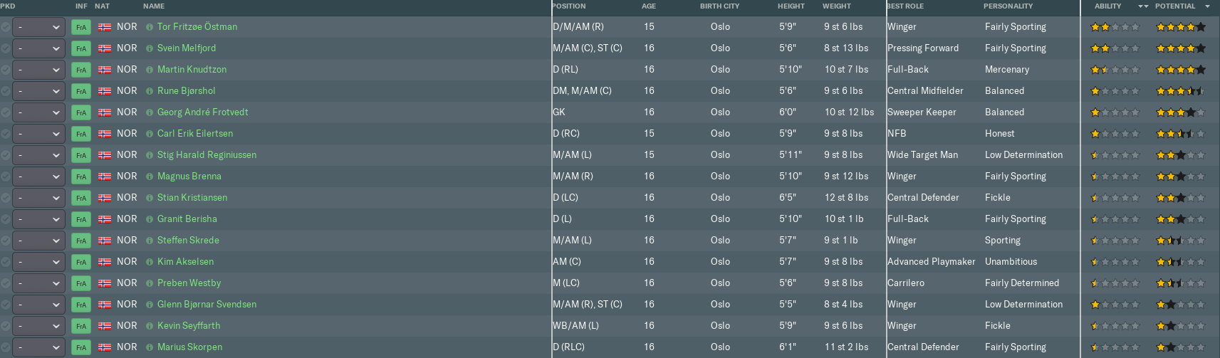 And here are the dozen players who’ve joined Lyn for the new season. The first two – left-footed full-backs Martin Fasting and Joakim Rishovd – were actually signed shortly before I took charge, but the others were all my own acquisitions.