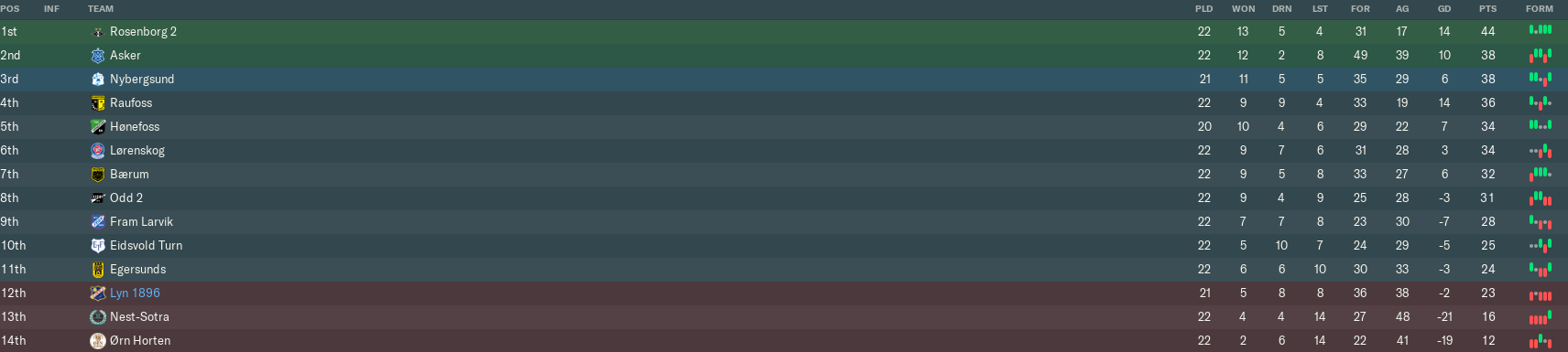 Anyway… the story. We left off with Marit Enstad having signed three players to try and lead Lyn up the table. Can they make a late push for promotion… or is the season about to take a dark turn?