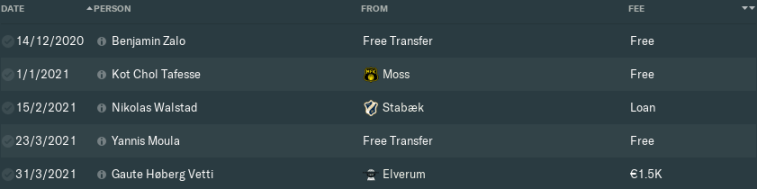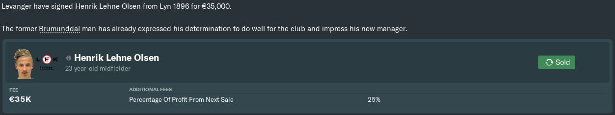 We then made a handsome €35,000 through the deadline-day sale of our sought-after playmaker Henrik Lehne Olsen. Levanger from the 1. divisjon initially offered €11,000, but after some tough negotiating, we trebled the fee and get a sell-on clause as well.