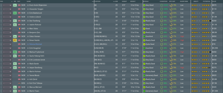 37-year-old Kim-Gøran Nilsen [who has 12 in both Judging Player Ability and Judging Player Potential] has been hired as chief scout and will mainly analyse our forthcoming opponents. He’s been joined on the scouting staff by a 35-year-old Swede in Fredrik Svantesson [12 JPA, 11 JPP]. They respectively replaced Bjørn Erik Tronsmoen and Kristoffer Stolsmo, who each wanted pay rises that their abilities did not deserve.