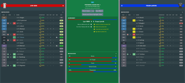 Dan Tandberg might have been a 17-year-old with only six league games on his record, but he was blossoming into an impressive defender. Despite losing some of his resilience, he’d made great strides physically and had become tactically more responsible. Indeed, my assistant manager Daniel Westvang now thought Tandberg to be the second-best centre-half at Lyn, behind only Zalo!