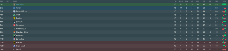 Tandberg and Bogsveen leaving the club has ended this chapter on a rather sad note, but I’m sure you’ll agree that things have gone incredibly well! Lyn are unbeaten in nine games and finally justifying their tag as promotion favourites.