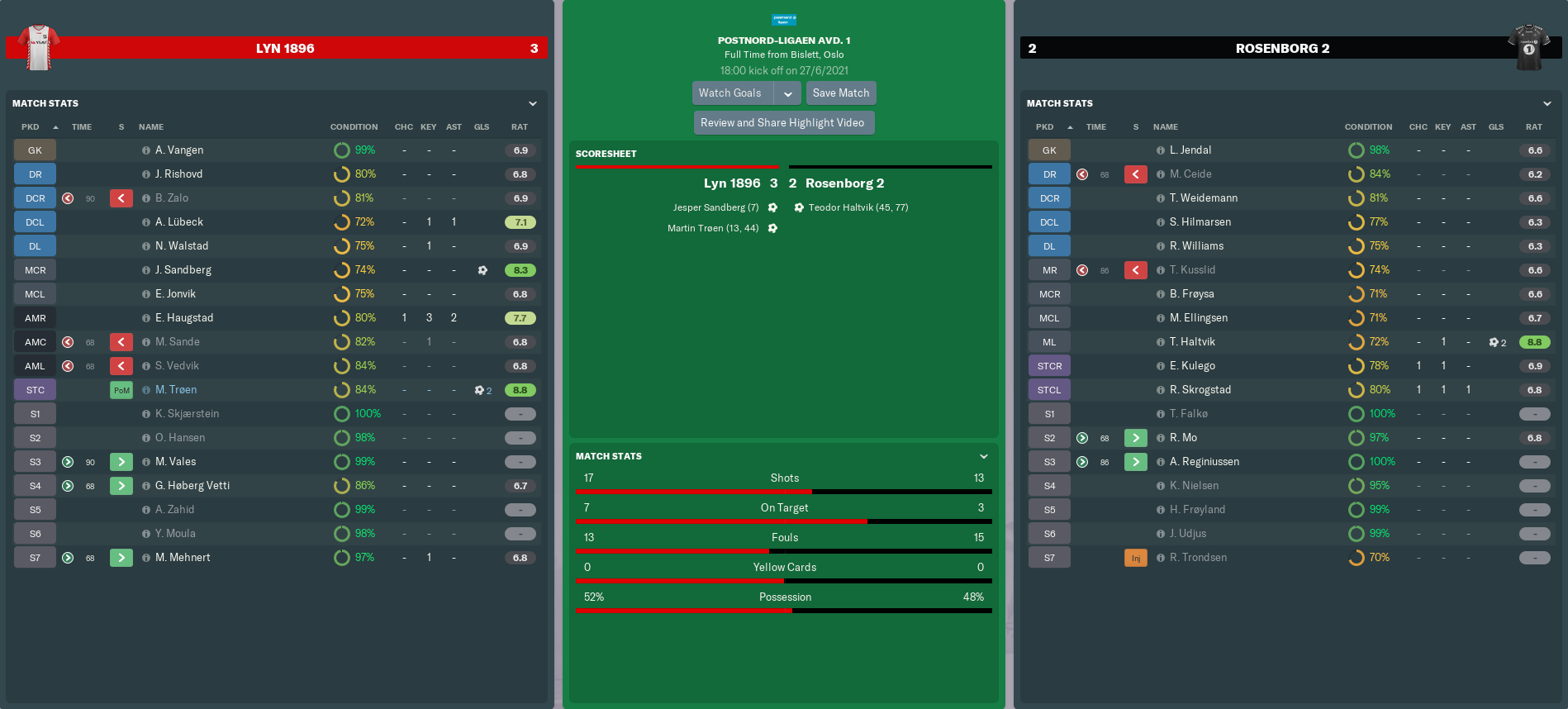 Dan Tandberg might have been a 17-year-old with only six league games on his record, but he was blossoming into an impressive defender. Despite losing some of his resilience, he’d made great strides physically and had become tactically more responsible. Indeed, my assistant manager Daniel Westvang now thought Tandberg to be the second-best centre-half at Lyn, behind only Zalo!