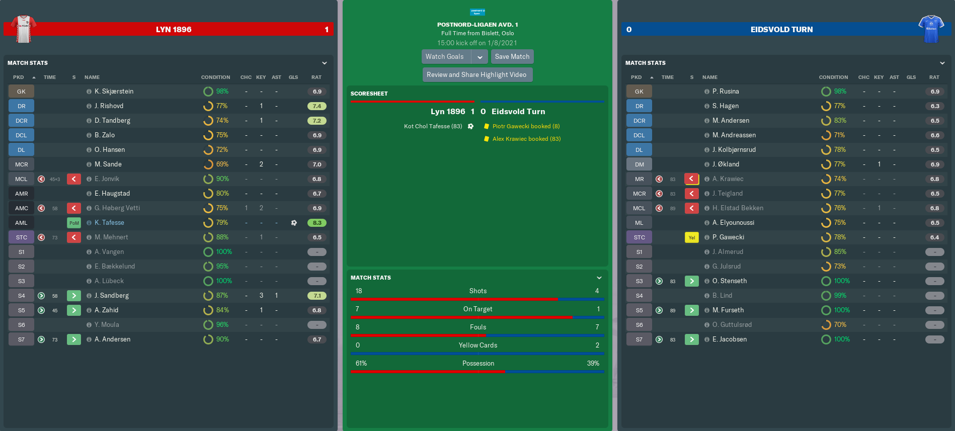 Before then, though, I gave Tandberg what would probably be his final start for Lyn. When we last hosted Eidsvold Turn in a relegation six-pointer last September, Dan had a disastrous game as we were beaten 4-3. Could he now come good in a match that would potentially have huge consequences on the promotion race?