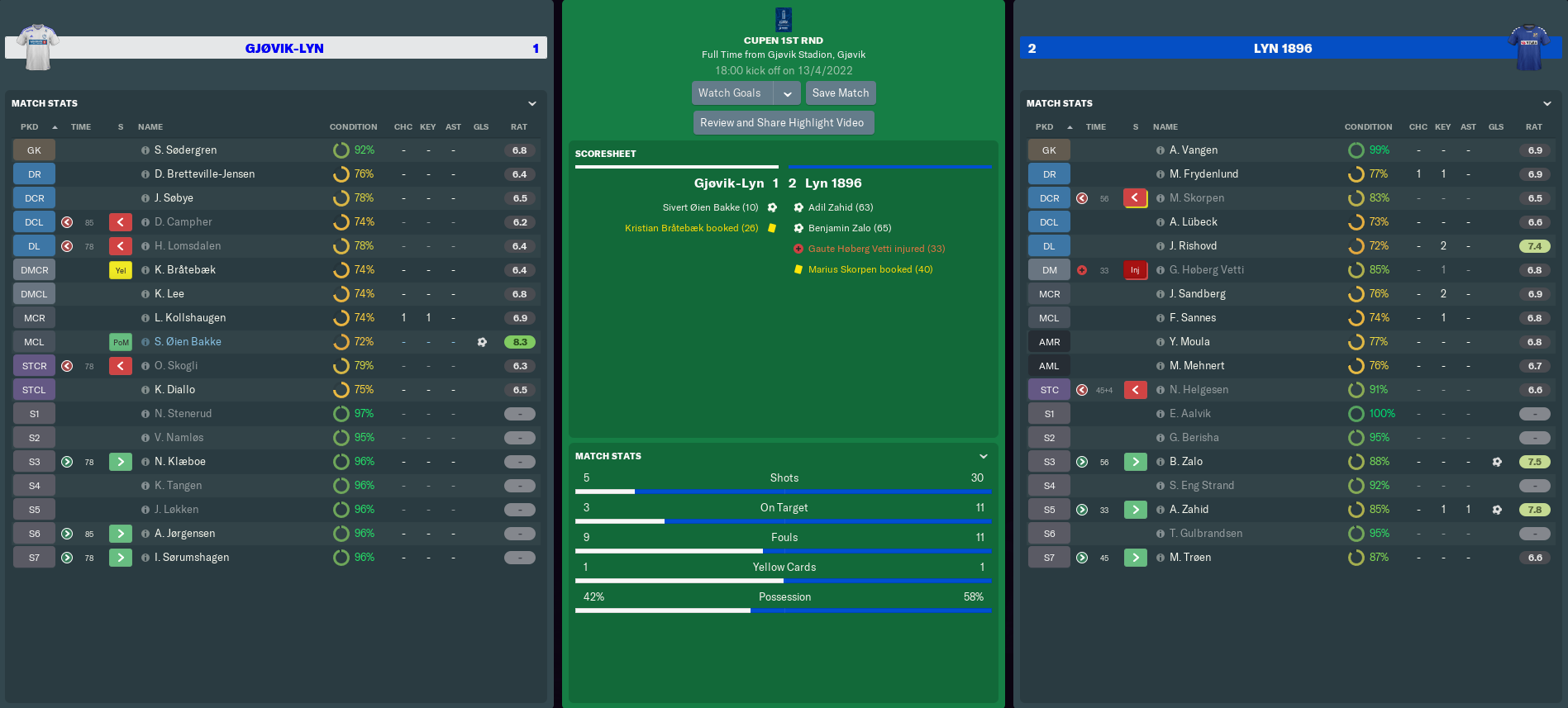 GJØVIK-LYN vs LYN 1896 (Cupen – Round 1)