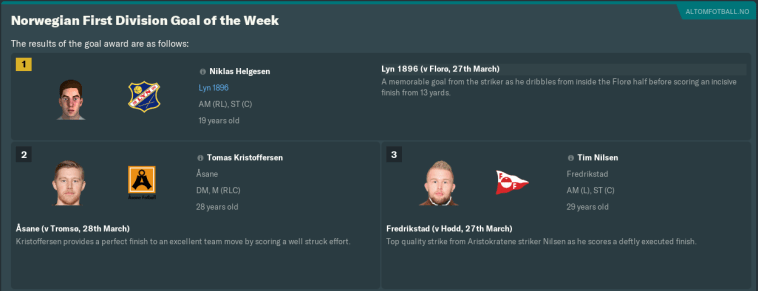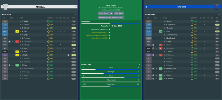 That second strike from Niklas was named as the 1. divisjon’s best goal of the opening week. I rewarded the youngster with a start in our next game. Could he continue the momentum at Arendal, who finished 14th last season and only stayed up after beating Sandnes Ulf in a promotion/relegation play-off?